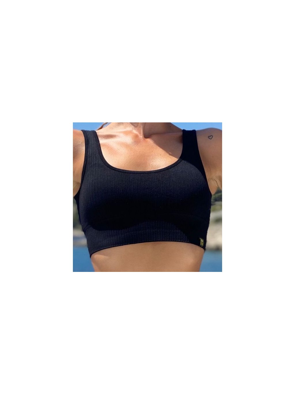 Skvěle padnoucí dámský top na cvičení. Je vyroben z měkké, pružné a dobře prodyšné žebrované tkaniny. Podprsenkový top zajišťuje středně silnou podporu a je tak ideální při cvičení jógy, fitness sestav, pilates a posilování.